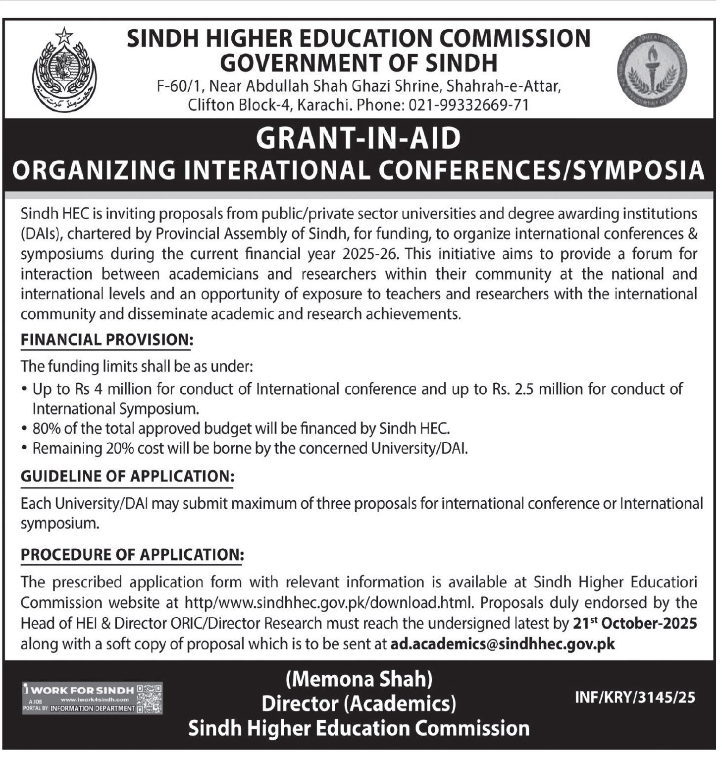 - The Guidelines, application form and letter will be hosted on Website of Sindh HEC on the first of April every year. Conference/symposium proposal request may be initiated on 1st of April every year.