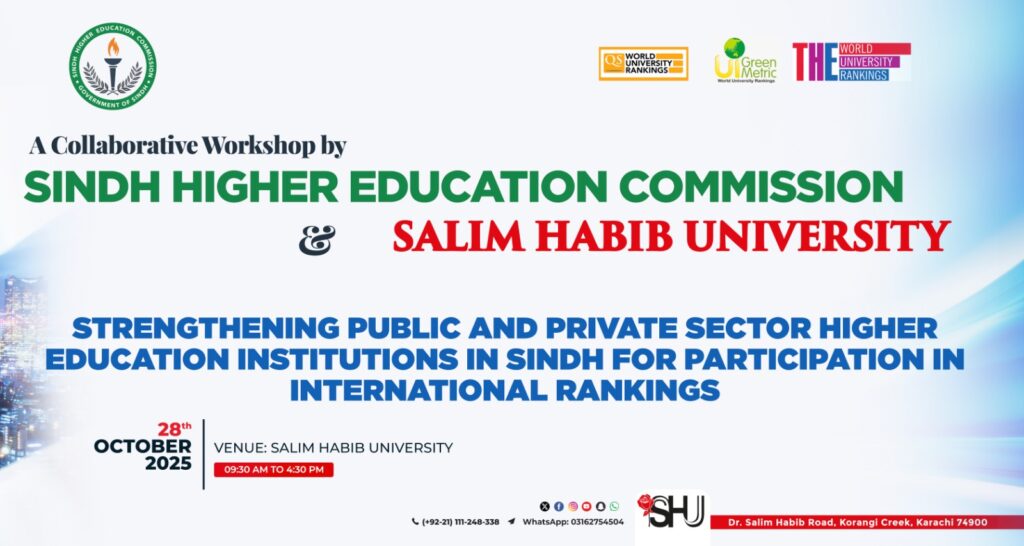 Sindh HEC Organizes Training Session to Strengthen HEIs for International Rankings The Sindh Higher Education Commission (Sindh HEC) organized a one-day training session at Salim Habib University, Karachi under the initiative titled “Strengthening Public and Private Sector Higher Education Institutions …